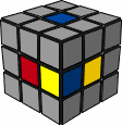 我说的够清楚了吧。D位置和B位置完全同理,也是把中间层含有蓝色的棱色块变到底面上去,然后对好侧面颜色,再翻上来,而对于A和C位置你可以旋转该面,让其变到B或D位置。如果某个棱色块的蓝色面已经在顶面或底面,相信大家会有办法解决的。 你要记住的是,如果遇到困难,就把蓝色变到底面,在底面上你是可以任意旋转的。 有时候,你会碰到左图这样的情况,蓝黄色块转到底面时影响了已经对好的红色面,这时候,你需要在最后一步之前恢复红色面的位置。具体操作见下。