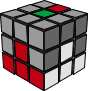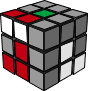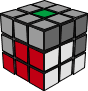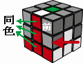 我们要把顶层红白棱色块插入到上图红色箭头所指的位置,你应该把红白所夹的角放在最靠近你的位置(右前),然后一、二种情况非常好识别了,同色的一排分别在前面和右面。 对于第一种情况,使用下面的算法,