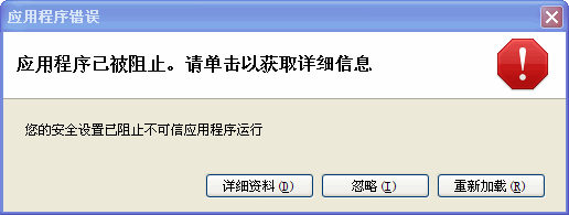 如果继续出现,“您的安全设置已阻止不可信应用程序运行”。