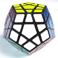 五魔方是一个正12面体,每个面都是一个正五边形。一般我们用白色当做底面,灰色当做顶面。剩下的10个面就都在侧面了。侧面可以分出两层,下面一层五个面都是比较深的颜色,分别是深红、深蓝、深黄、深紫、深绿。而侧面的上面一层五个面都是比较浅的颜色,分别是橙(可以看成浅红)、浅蓝、浅黄、粉(可看成浅紫)、浅绿,在十二个面里,相近的一深一浅的颜色总是相对的。比如深蓝和浅蓝相对。